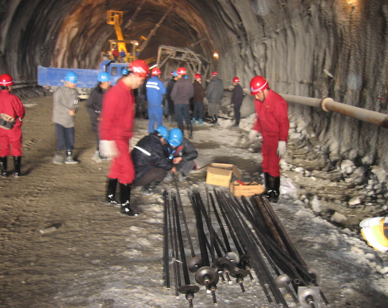 圖強低預應力錨桿施工簡單方便,在鄭萬高鐵的隧道工程應用中優化的鋼拱架設置;在錦屏二級水電站高埋深巖爆威脅起到了極大作用;在京張高鐵八達嶺大跨度車站多硐室地下車站支護中極大的保證了安全性;如今正在國家重點工程川藏鐵路做為復雜地質條件隧道系統主動支護發揮重大的作用。